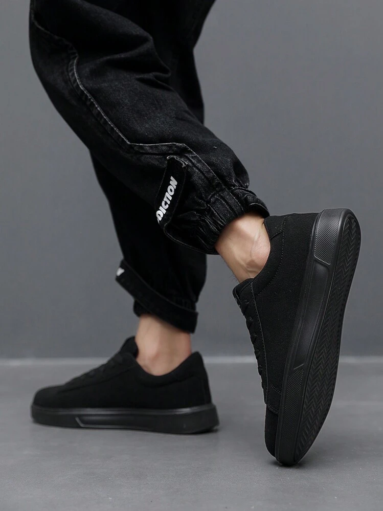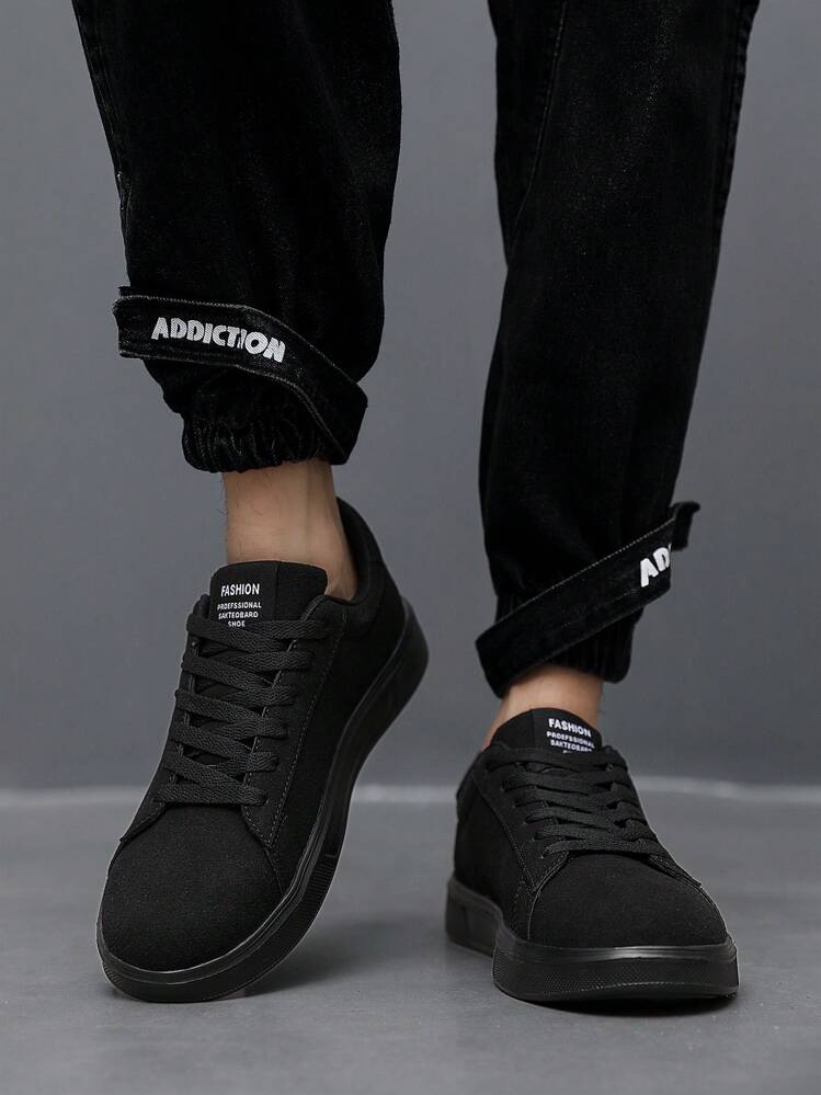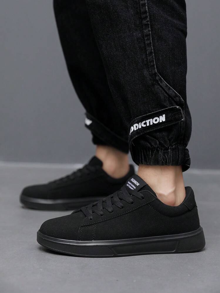 أحذية رياضية كاجوال للرجال بتباين ألوان اللياقة الأسود الأحادي السوستة