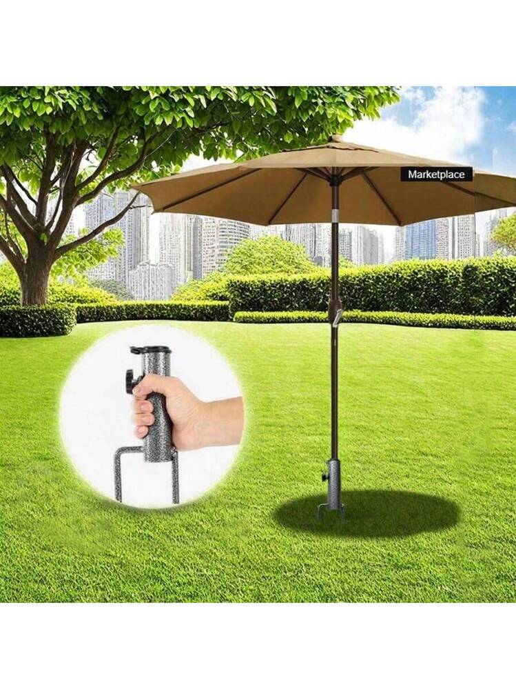 حامل مظلة معدني قابل للتعديل متين - مثبت حلزوني أرضي قوي لعلم، مظلة، صيد، استخدام في الحديقة والشاطئ، مناسب للتربة والمروج، محمول، مقاوم للطقس وسهل التركيب