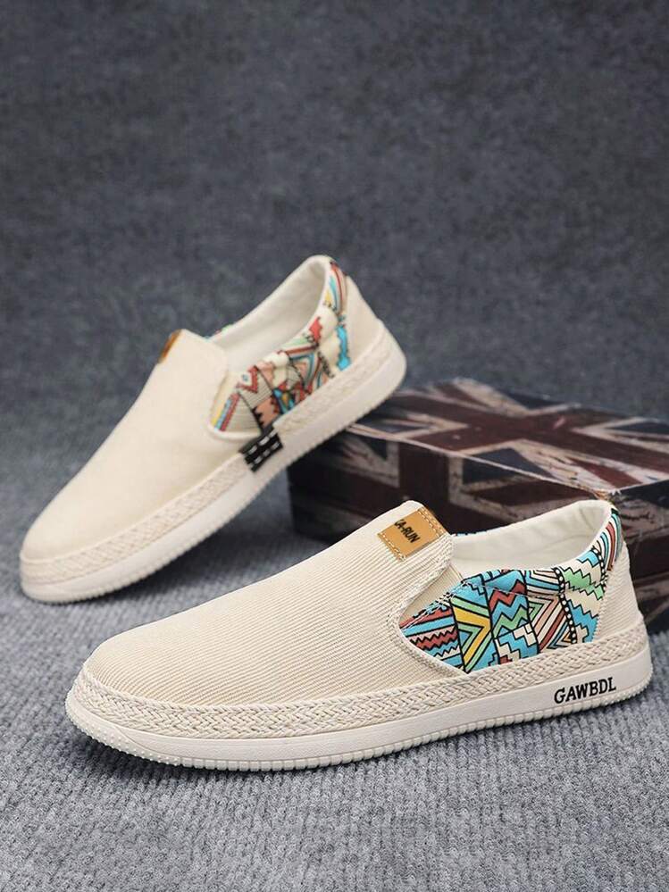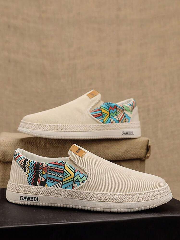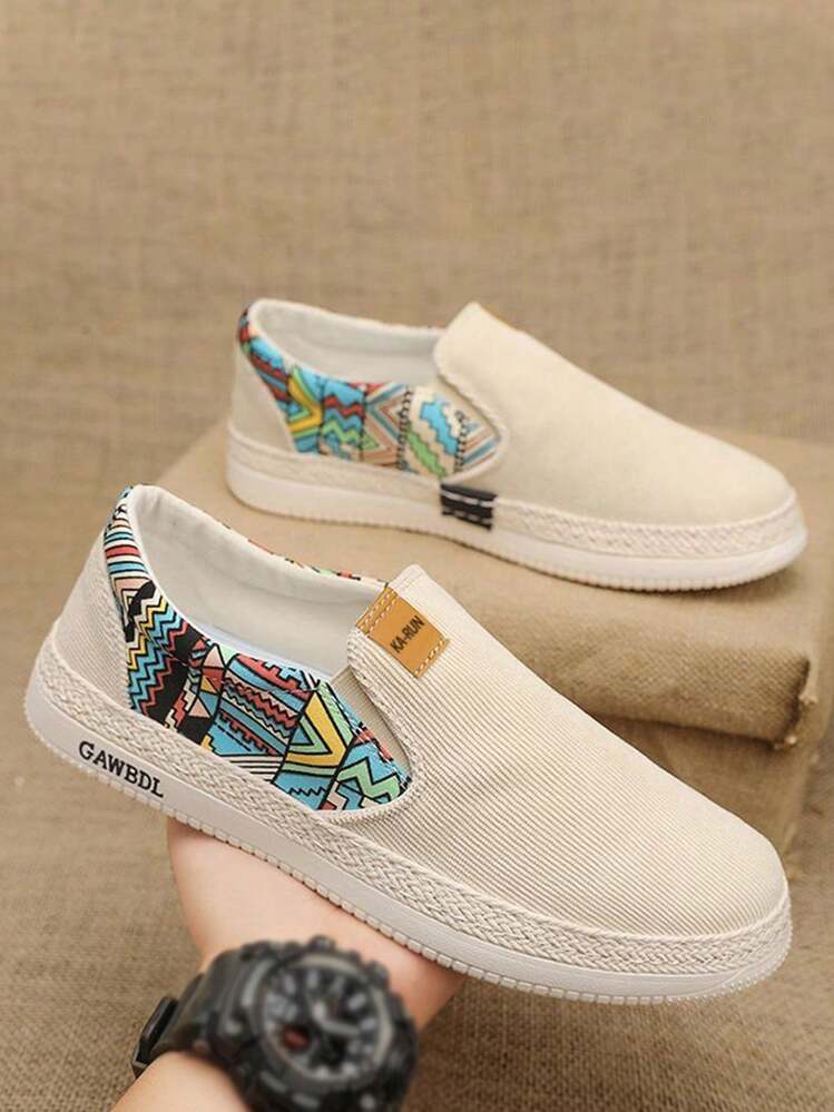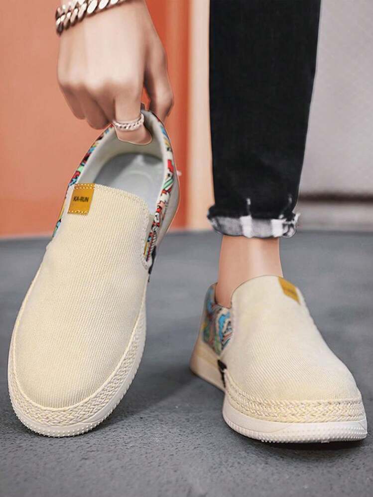 حذاء رجالي كاجوال بدون أربطة سهل الانتعال، نعل مسطح مريح وناعم