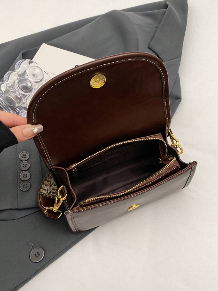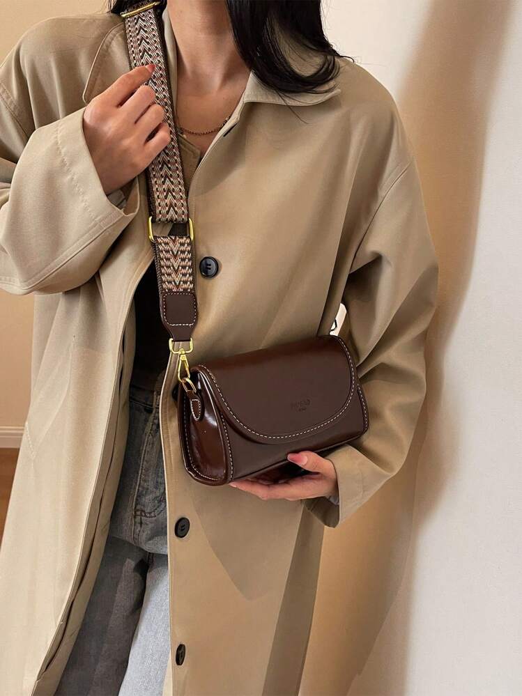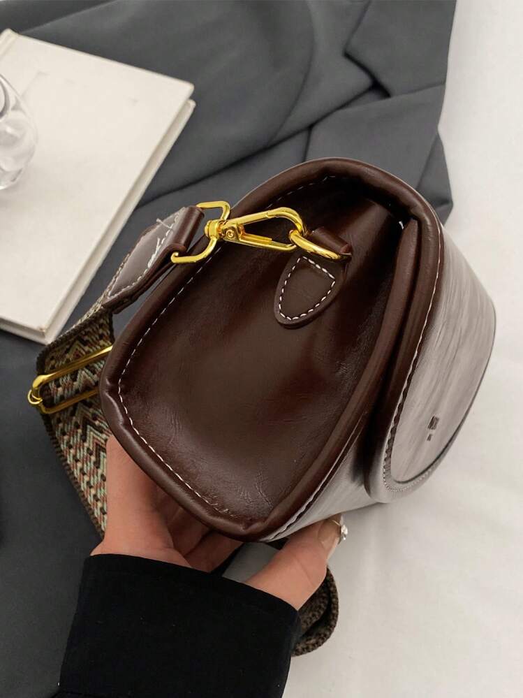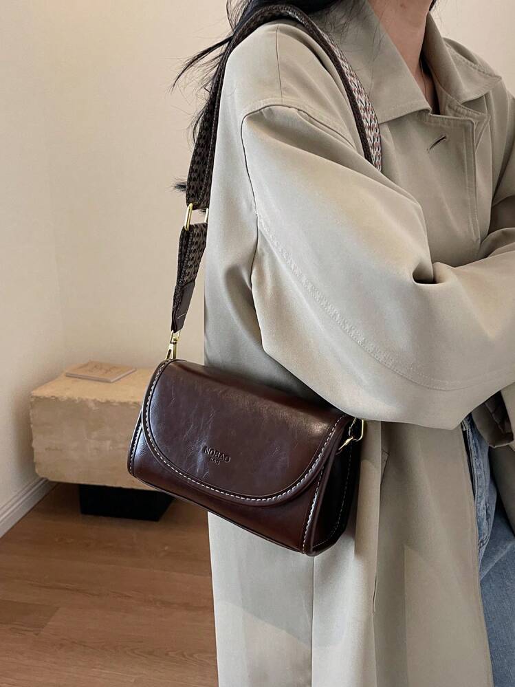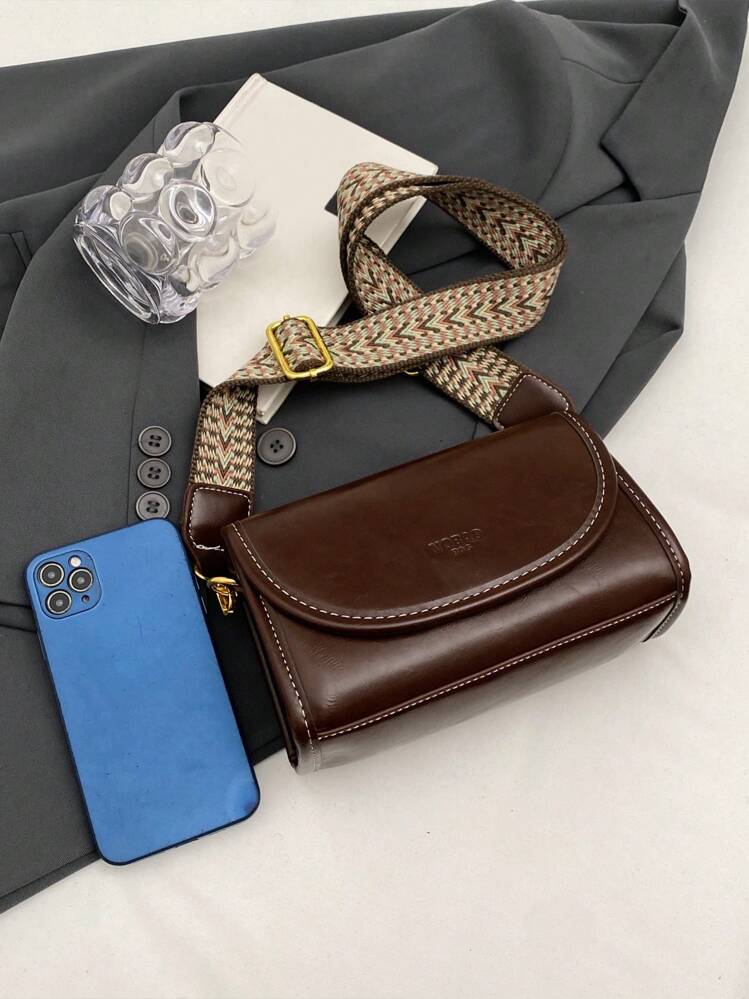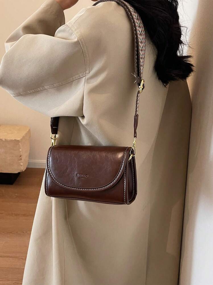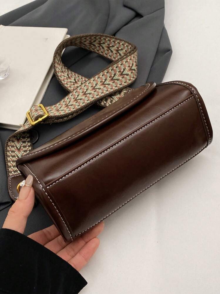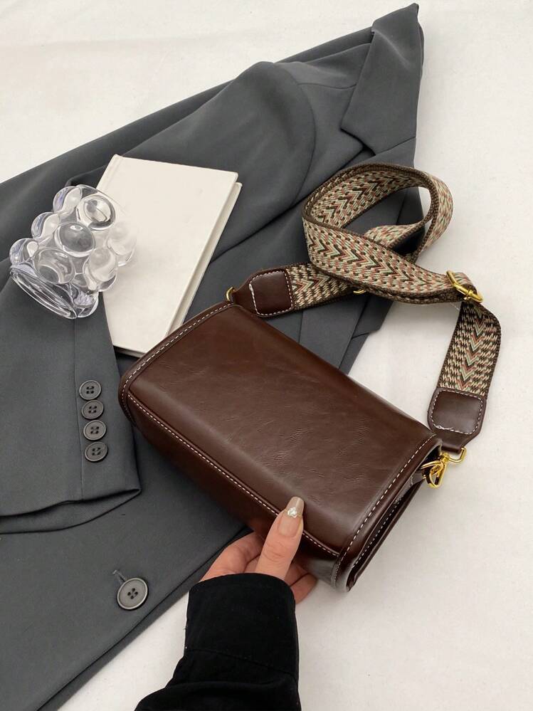 حقيبة كتف مربعة بنمط فينتاج مع شريط عريض