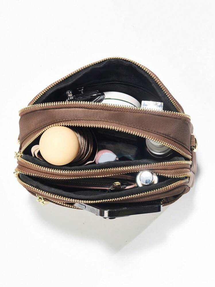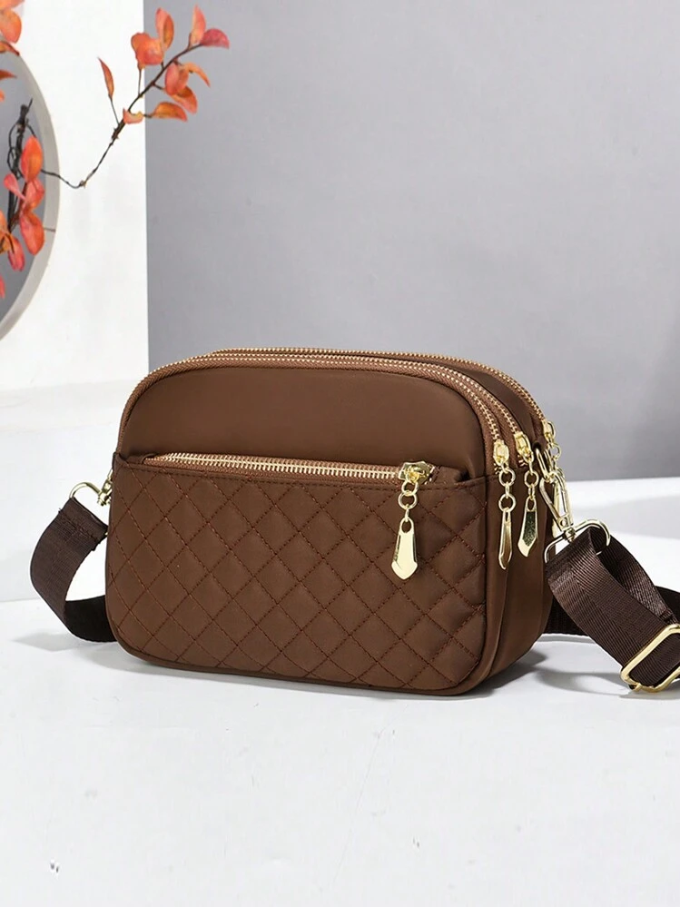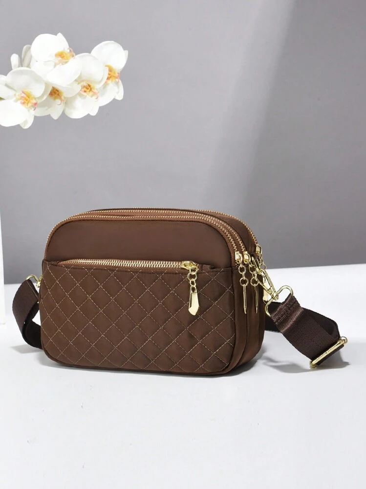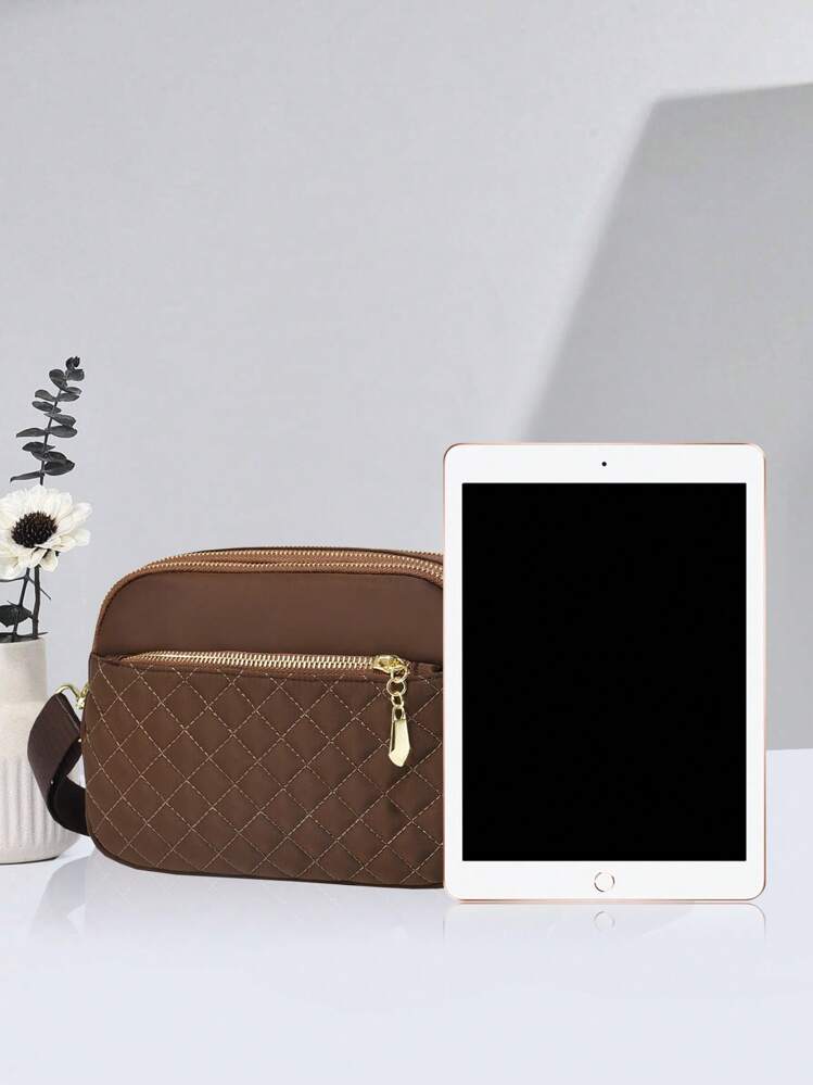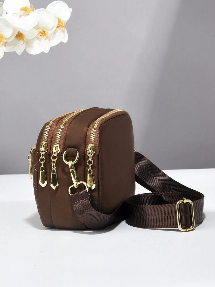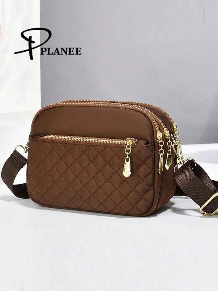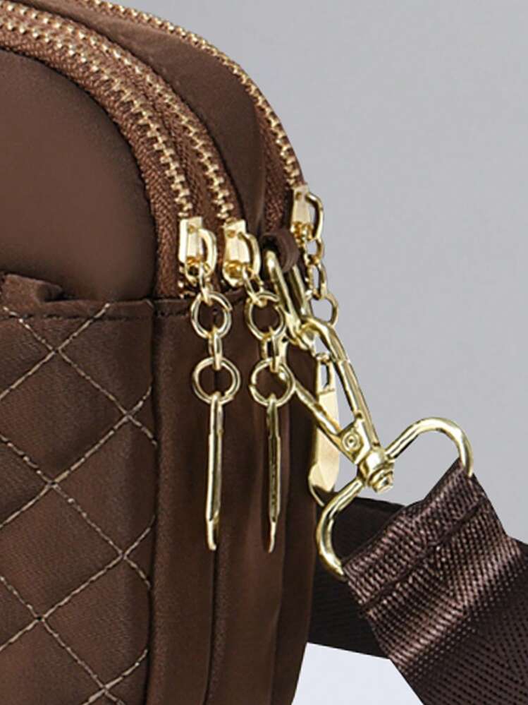 حقيبة كروسبودي صغيرة خفيفة بتبطين منقوش بني من بلاني