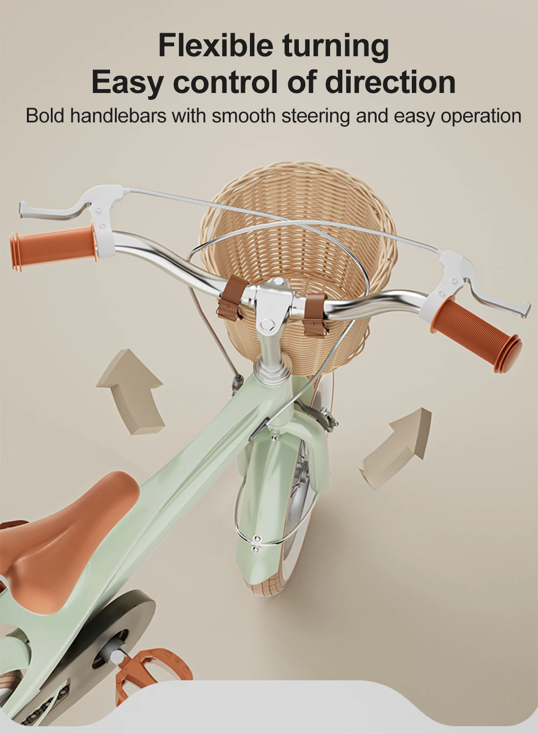 4 ، مريحة وعملية ، مجهزة بسلة واسعة وأنيقة ، توفر دراجتنا مساحة تخزين واسعة لجميع مستلزمات طفلك.