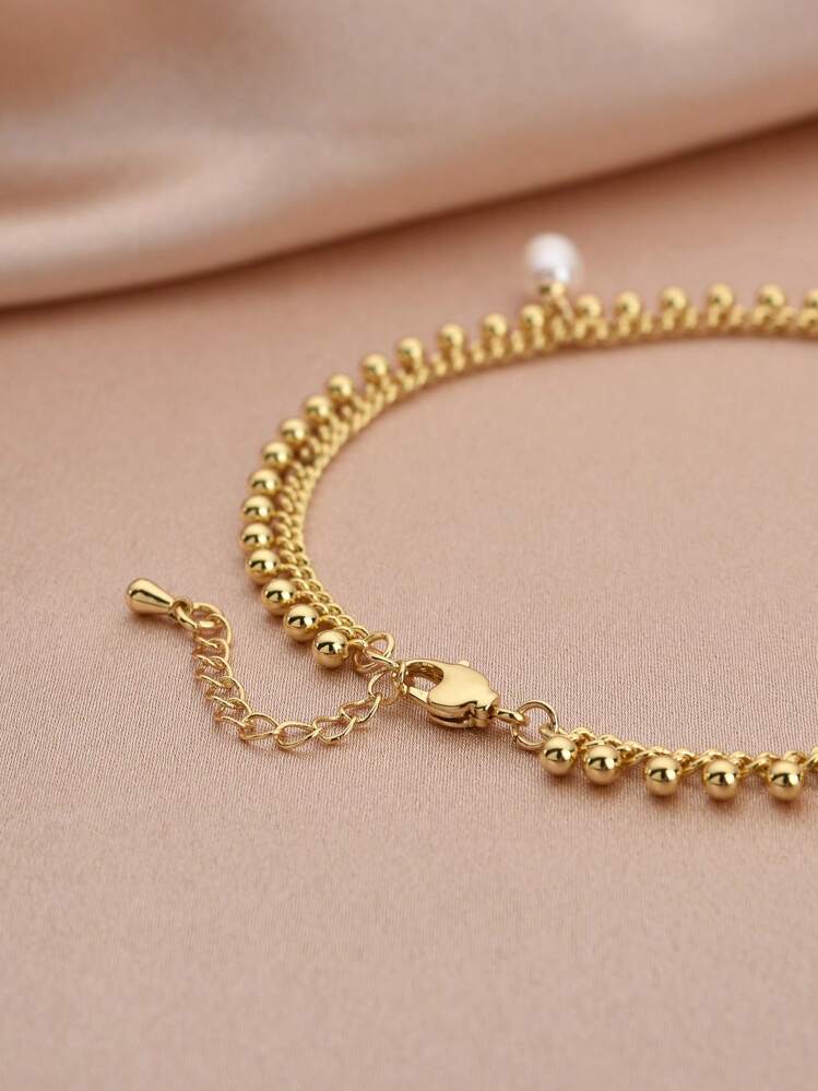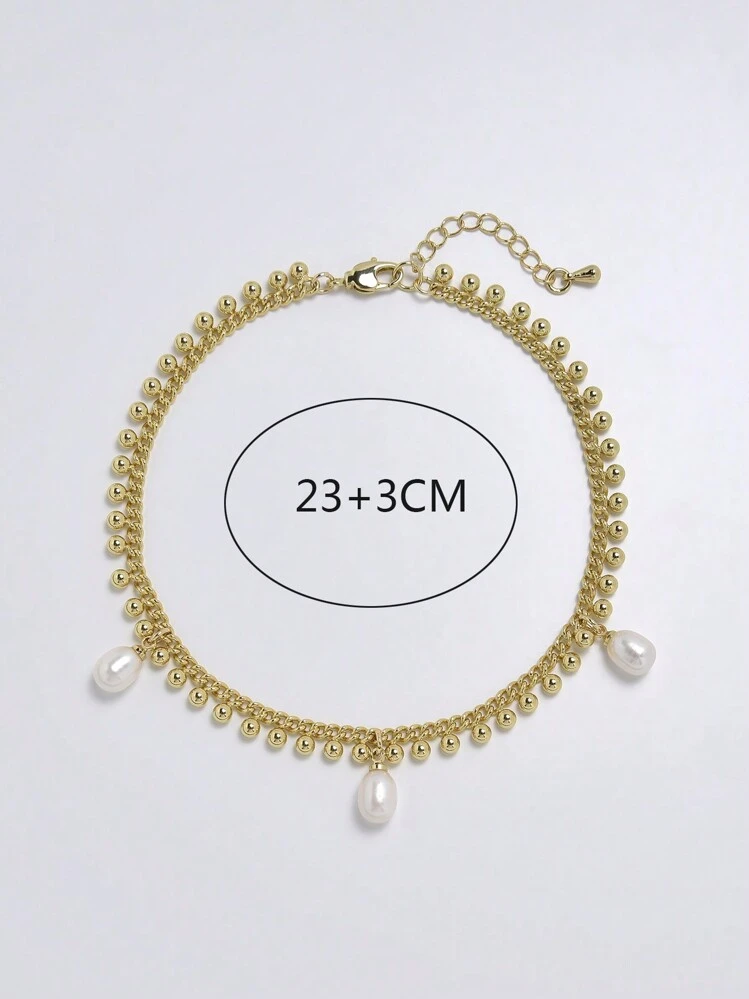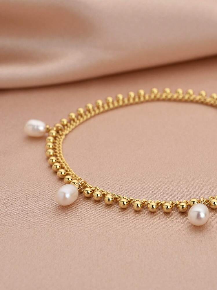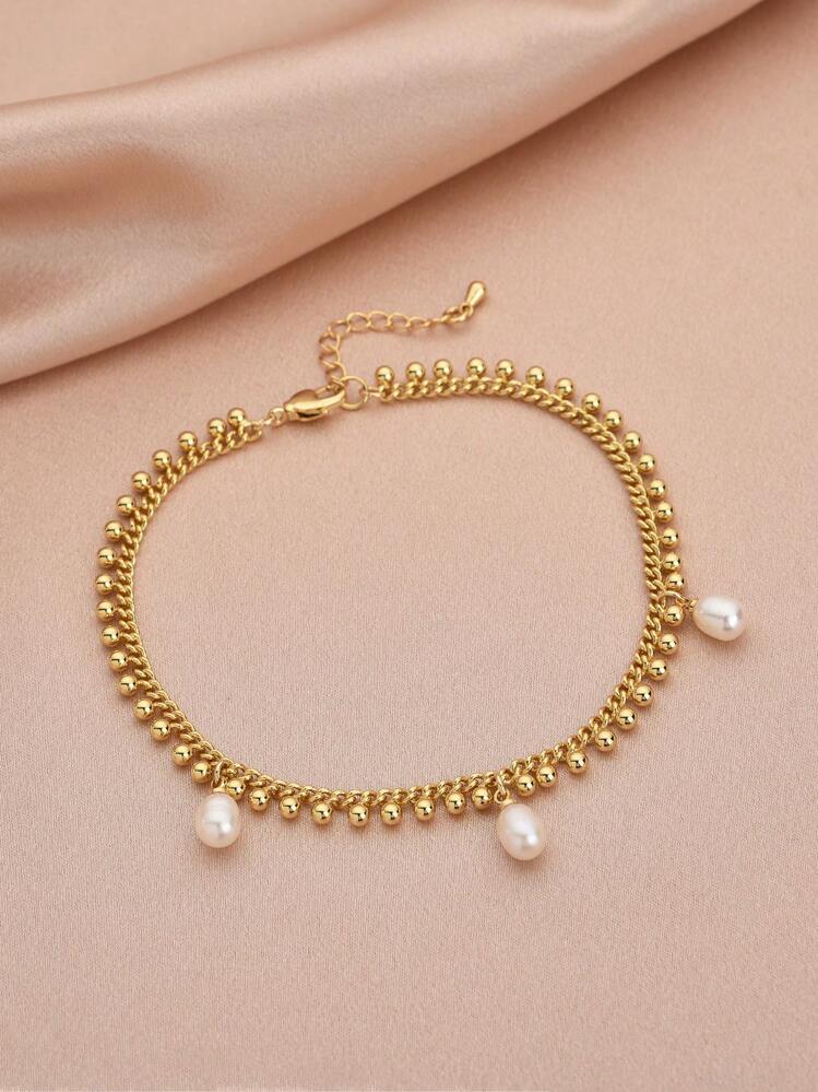 سوار الكاحل النسائي المطلي بالذهب عيار 18 قيراطًا الموضة مع لؤلؤ طبيعي
