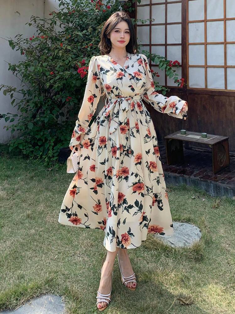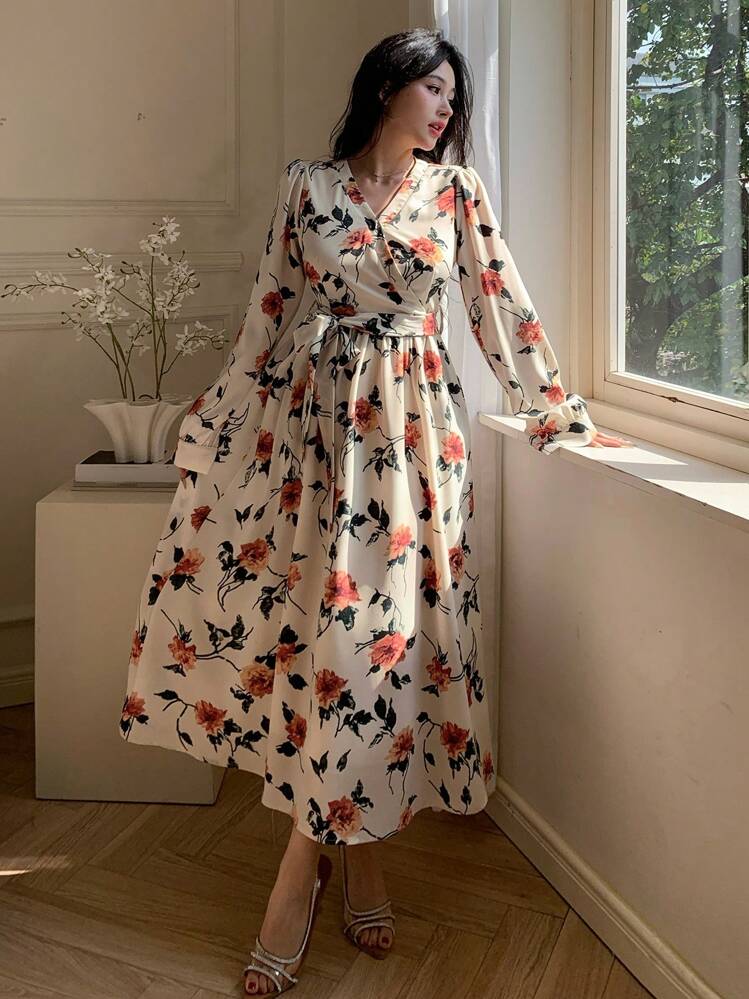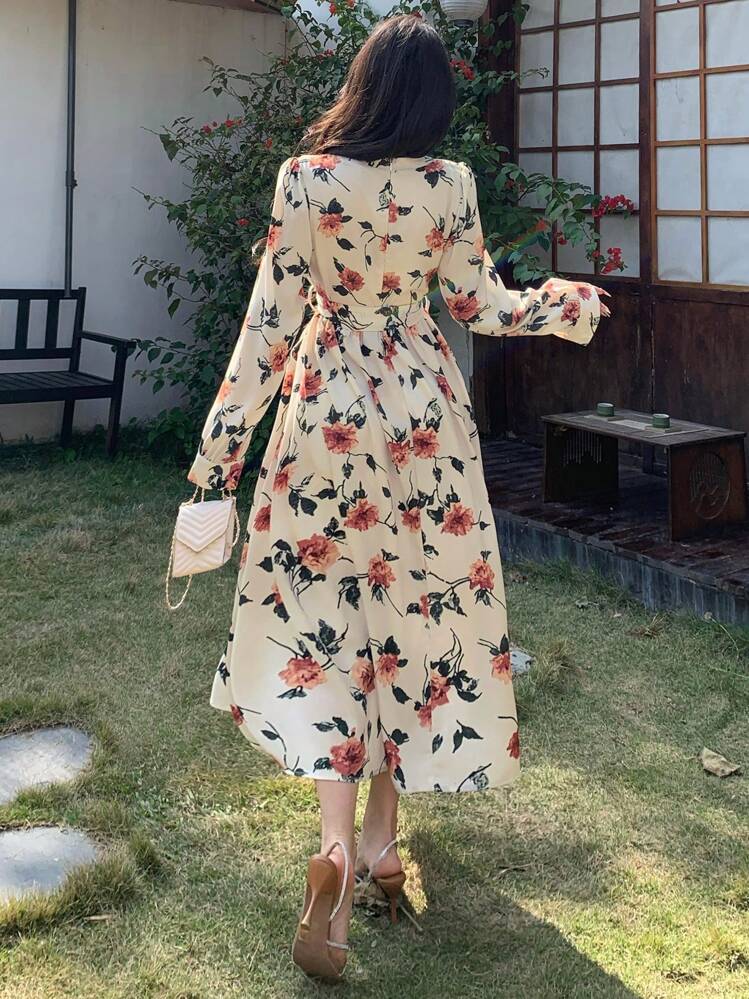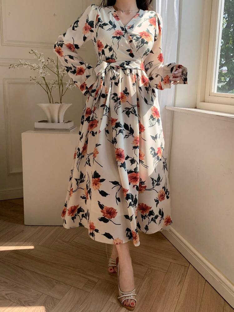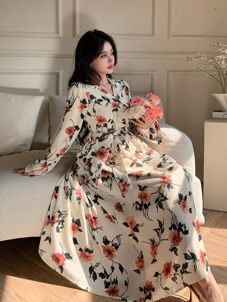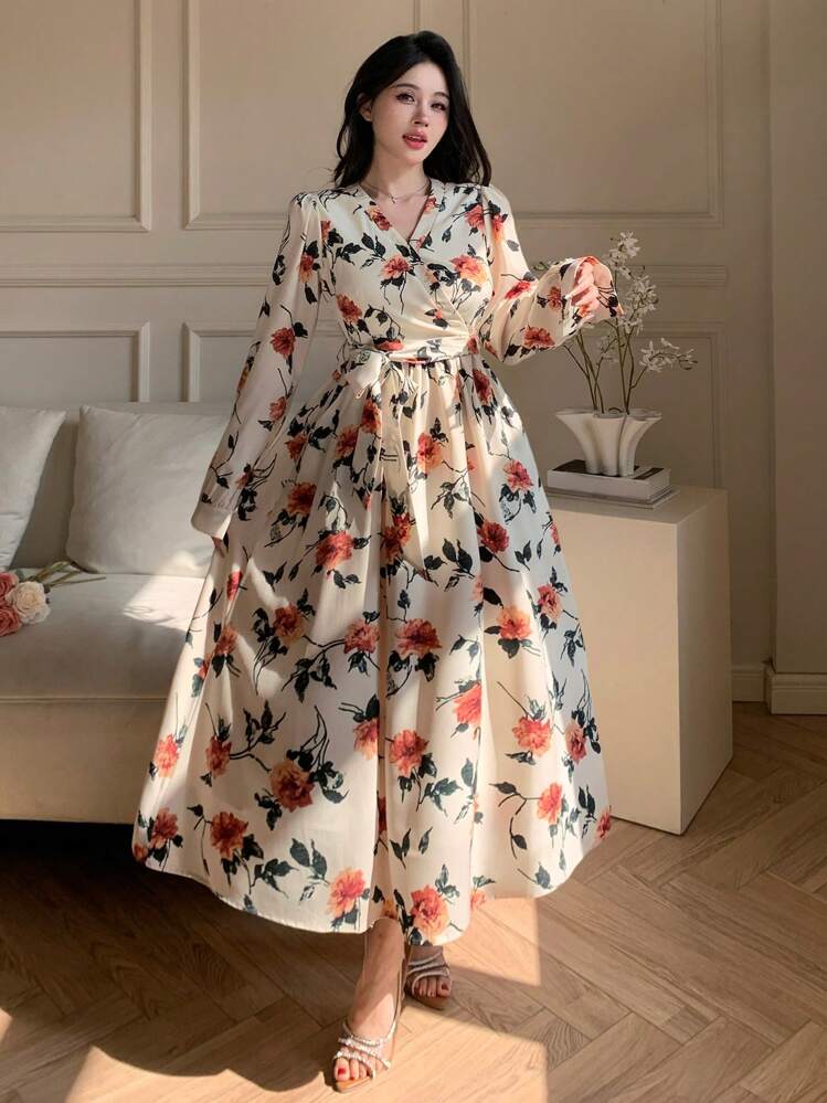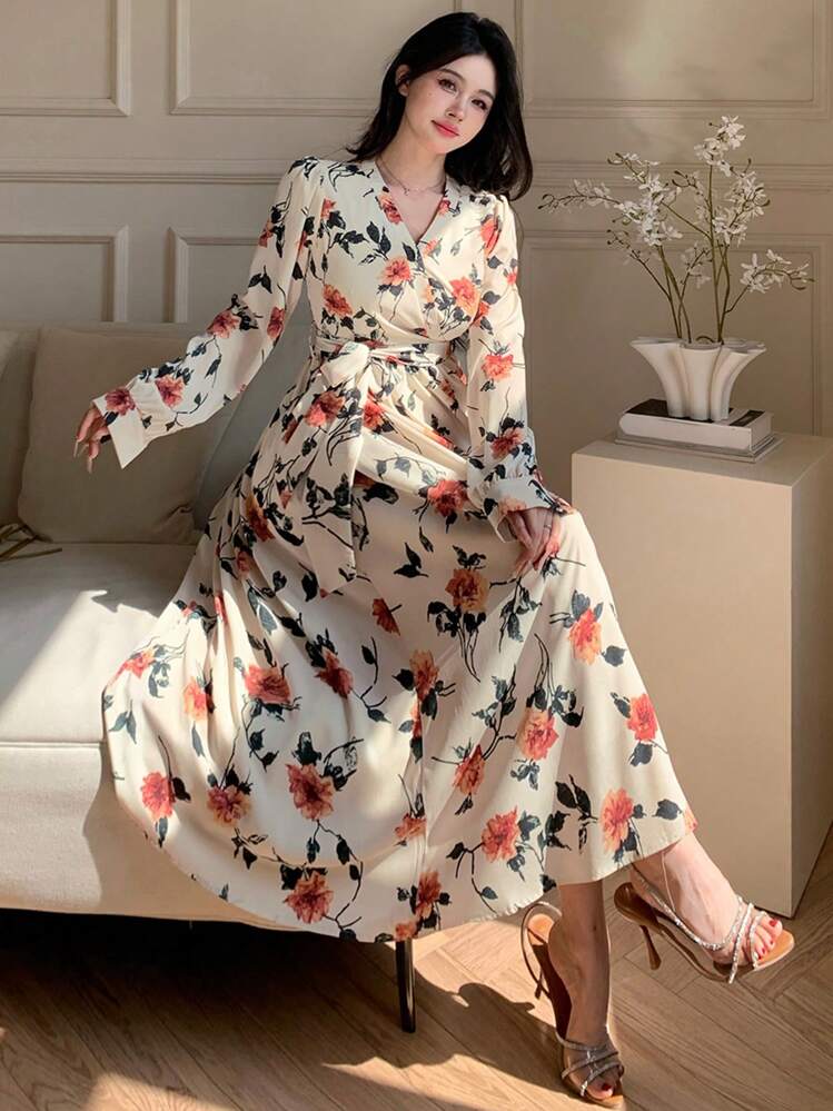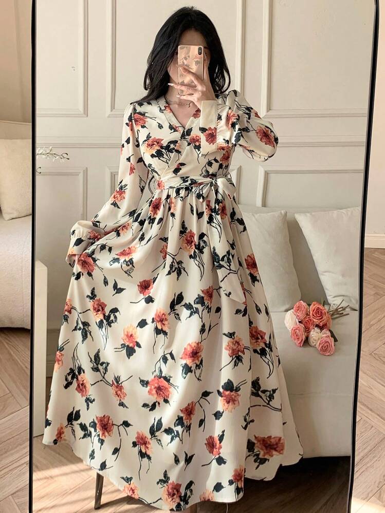 فستان طويل مطبوع بطبعة زهرية أنيقة للنساء