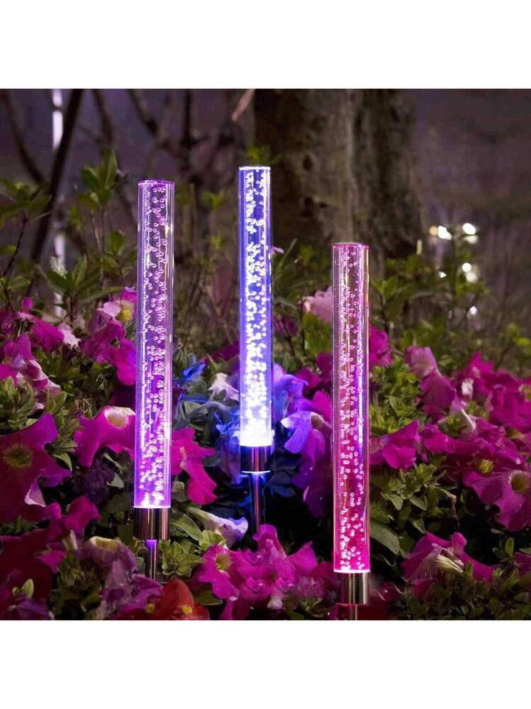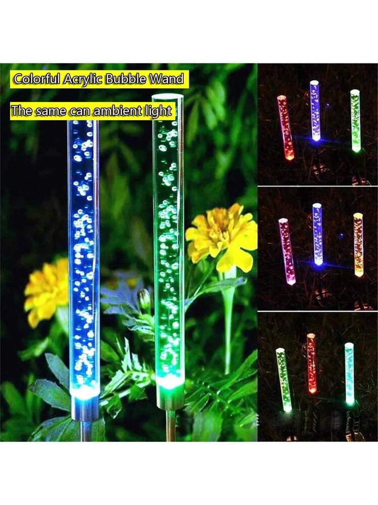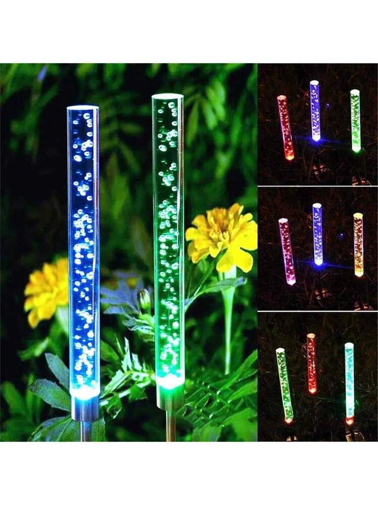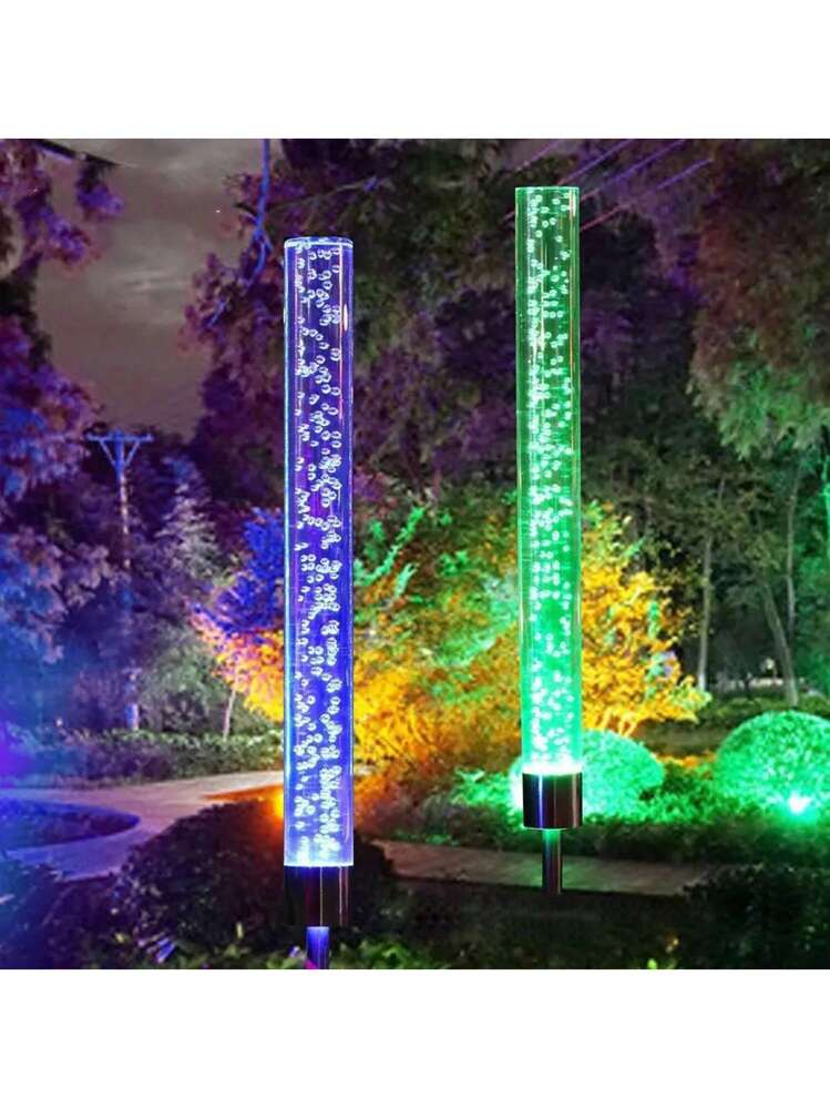 2 قطعة إضاءة أعمدة حدائق شمسية - تغيير الألوان RGB نابضة بالحياة - تصميم مقاوم للماء - شحن شمسي سهل، مناسبة لإضاءة طرق خارجية - رائعة لديكور الباحة والحديقة والأرض