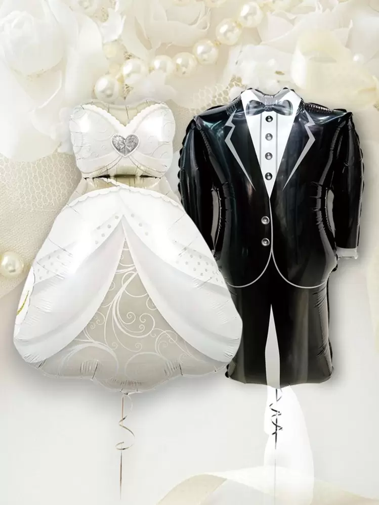 MECRLA 2 مجموعة من بالونات تصميم فستان عروس والبدلة ، مناسبة لديكور الزفاف ، ديكور حفلات الخطوبة ، ديكور حفلات الزفاف ، ديكور الخلفية الجدارية ، هدية العروس ، ديكور الحفلات ، عودة إلى تزيين أيام الحب في المدرسة